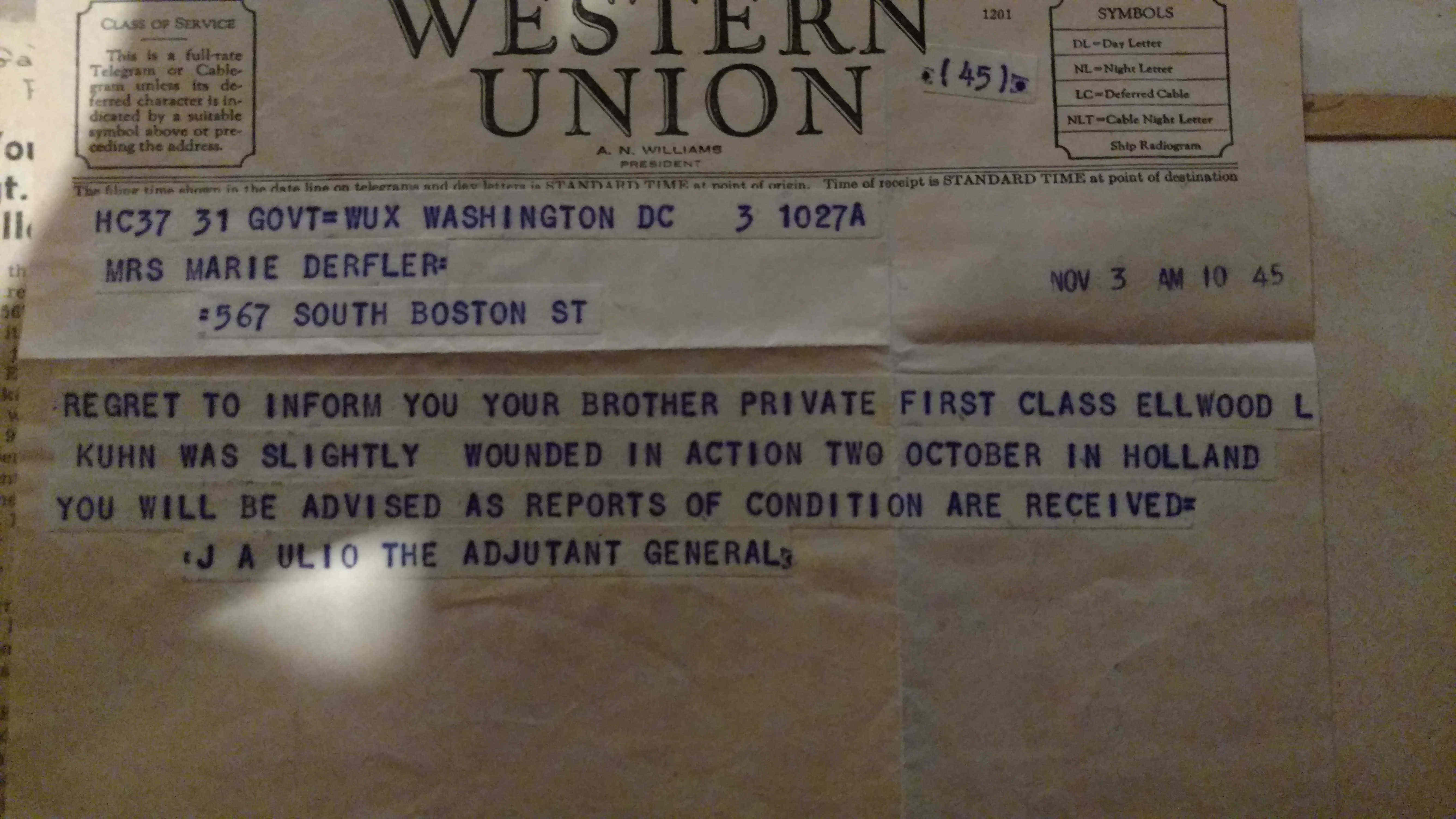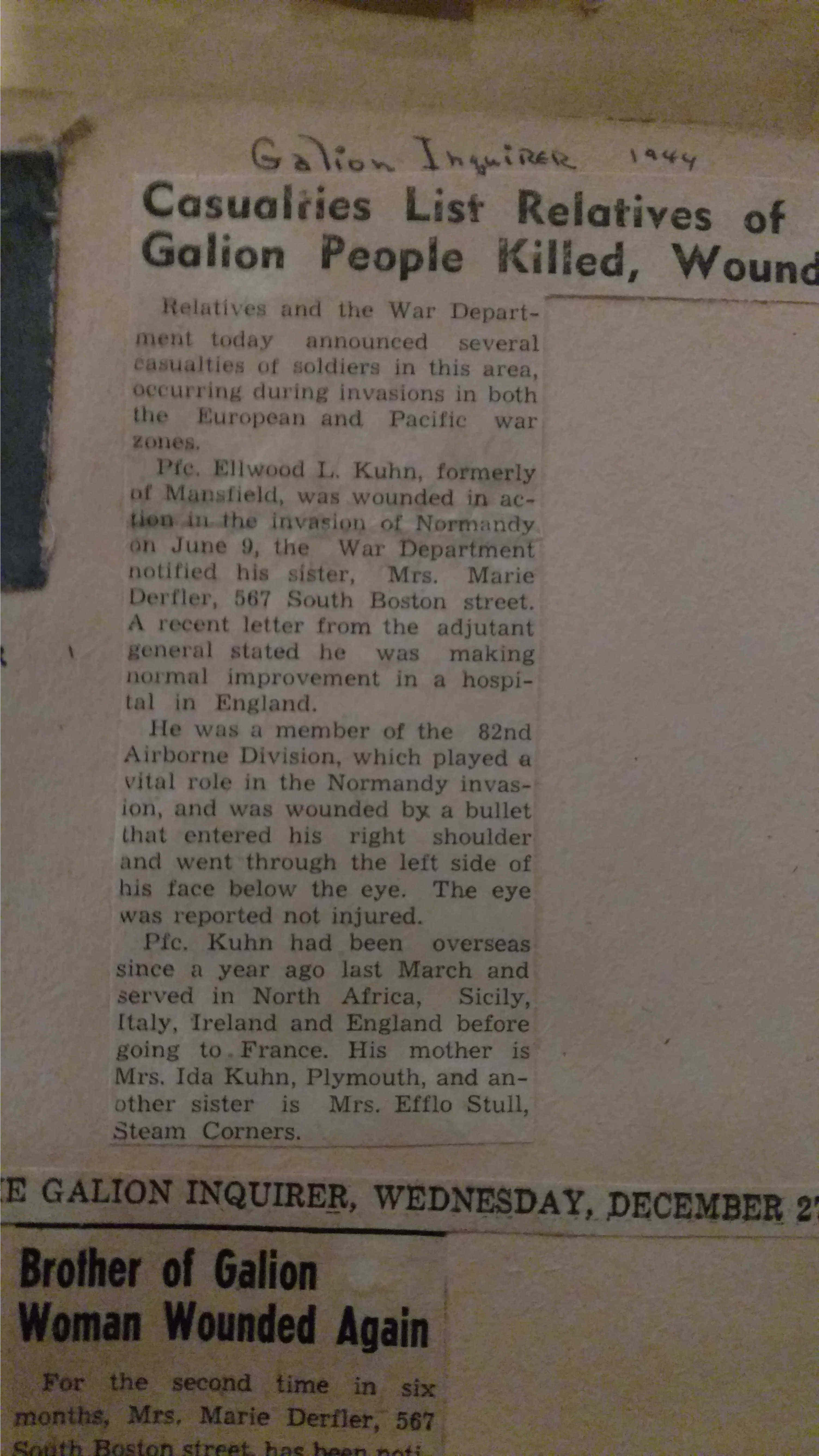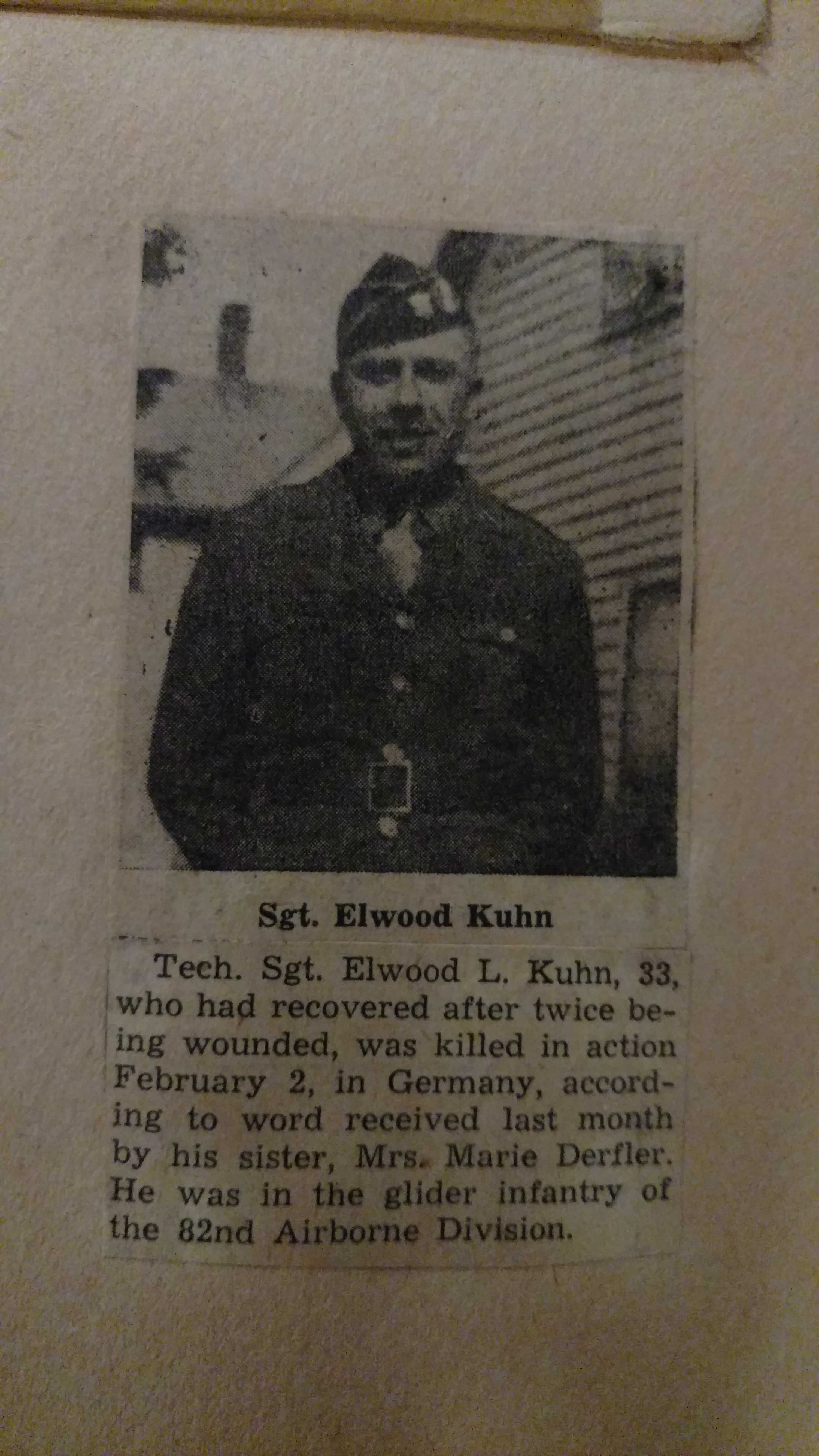 In loving memory of: Elwood L. Kuhn – K.I.A. February 2, 1945 Germany